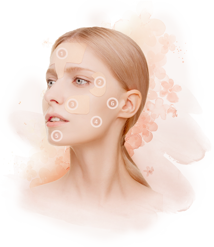 Тебе не придётся осуществлять сложные процедуры - тейпы Risorio имеют определенную форму для каждого участка лица. Просто достань, наклей и наслаждайся эффектом!